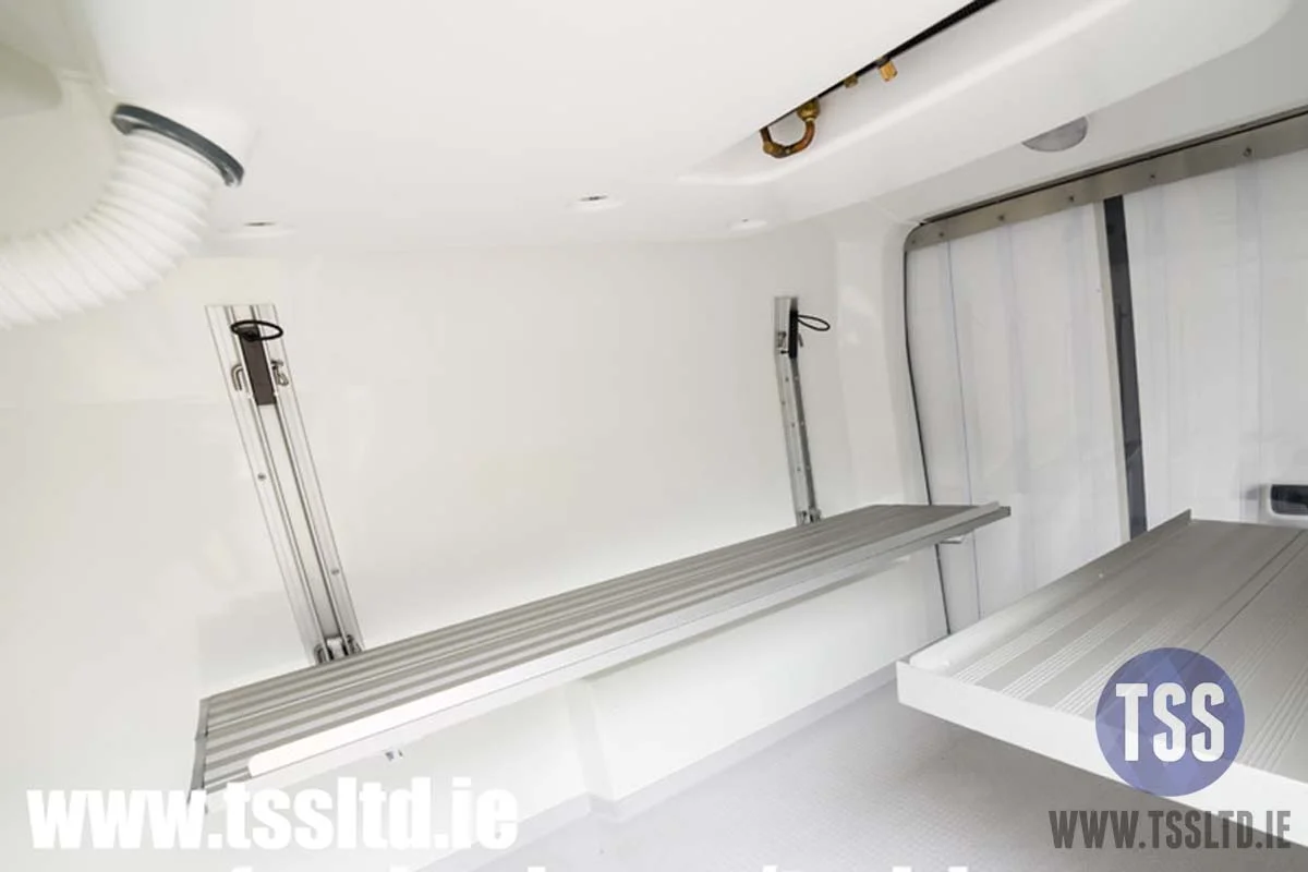 We can supply a range of custom built shelving configurations to suit your needs, we design and build shelving to maximize the space you have in the rear of your vehicle. If you have a special requirement don't hesitate to ask and well do our best to meet your needs. We can install custom shelving , pallet strips , chequered plate floor,led lights, polar curtains movable walls and much more.
